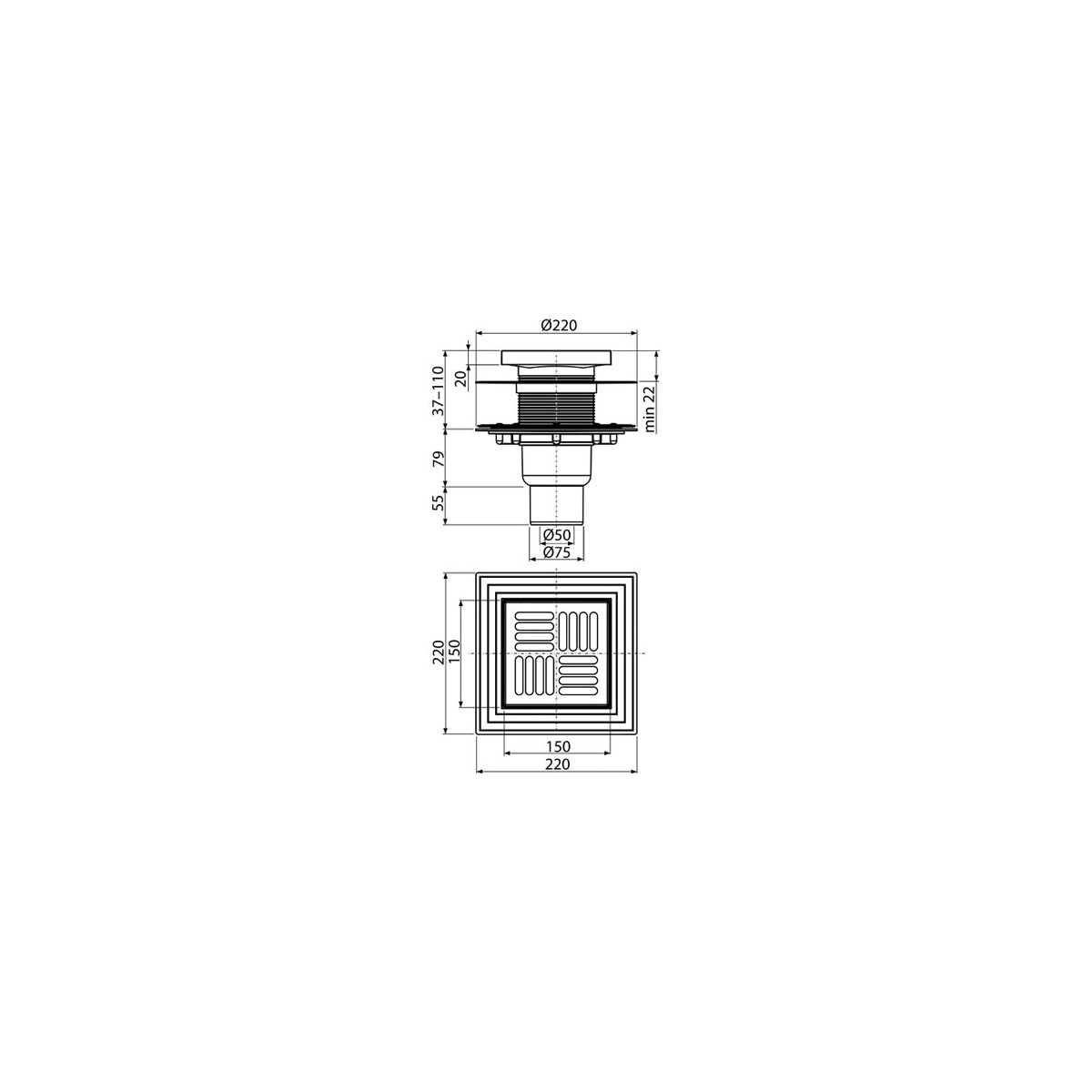 Podlahová vpusť vyrobena z polypropylenu, který je odolný proti mechanickému, chemickému a teplotnímu poškození do 95 °C. Vpusť se napojuje na odpadní trubku o průměru 50 nebo 75 mm. Vpusť se používá pro odvodnění v úrovni podlahy. Možné použití pro venkovní prostory, kde je možný pokles teploty pod bod mrazu - pouze v kombinaci se suchou zápachovou uzávěrou.