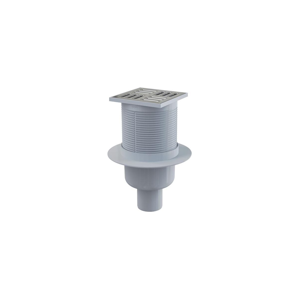 Plastová podlahová vpusť s nerezovou mřížkou, spodním odtokem a vodní zápachovou uzávěrou