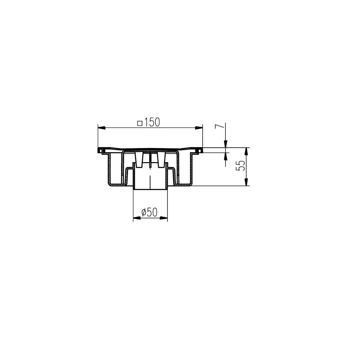 Podlahová vpusť 150 x 150 mm, mřížka nerez, spodní odtok d 50 mm, Chuděj 320 N
