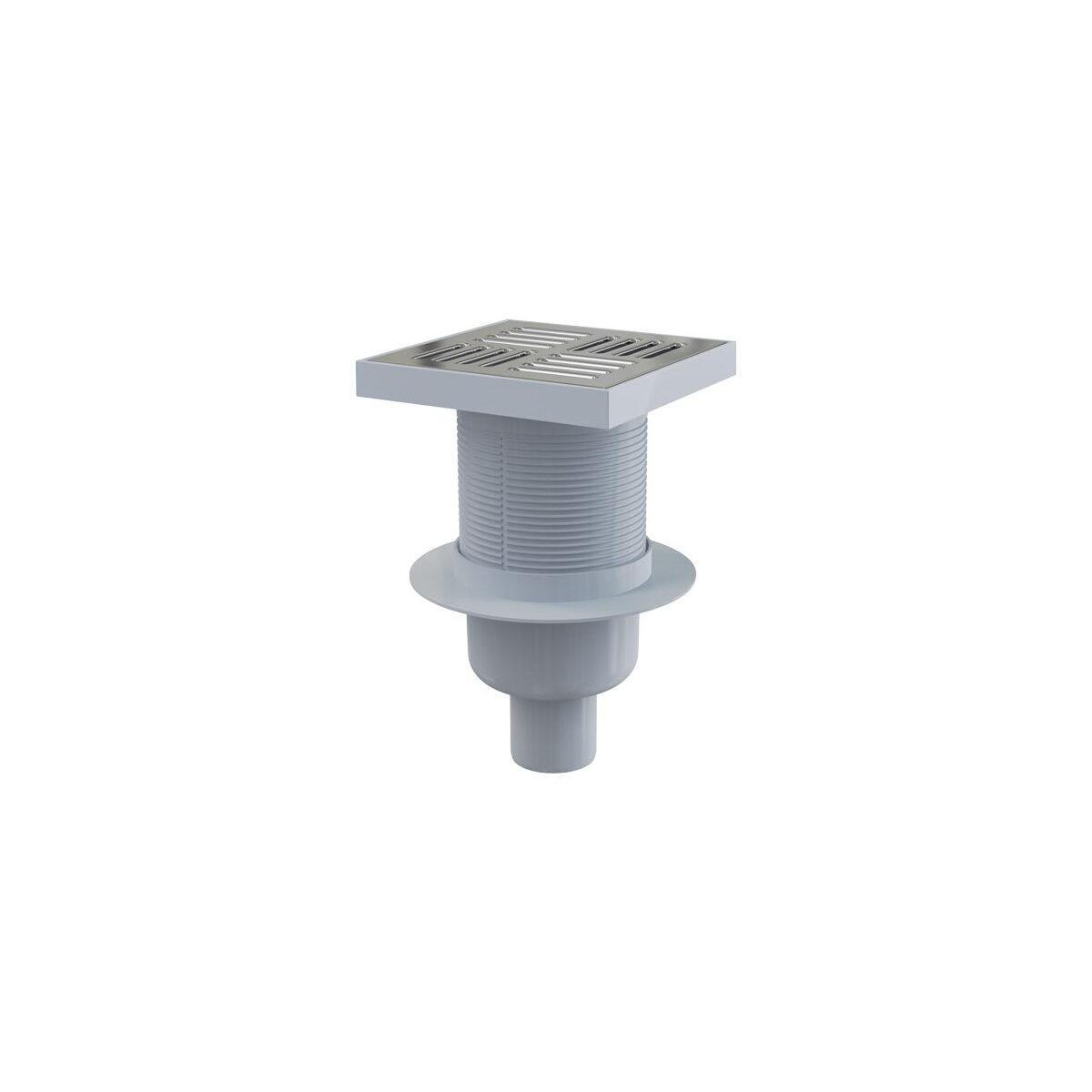 Plastová podlahová vpusť s nerezovou mřížkou, spodním odtokem a vodní zápachovou uzávěrou