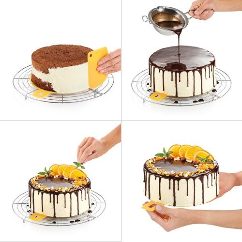 Usnadní vám zdobení dortů tekutou čokoládou, podélné krájení dortových korpusůnanášení krémových a ovocných náplníroztírání tekutých a krémových polev, jsou šikovné a účelné při dekorování dortů i jejich přenášení.
