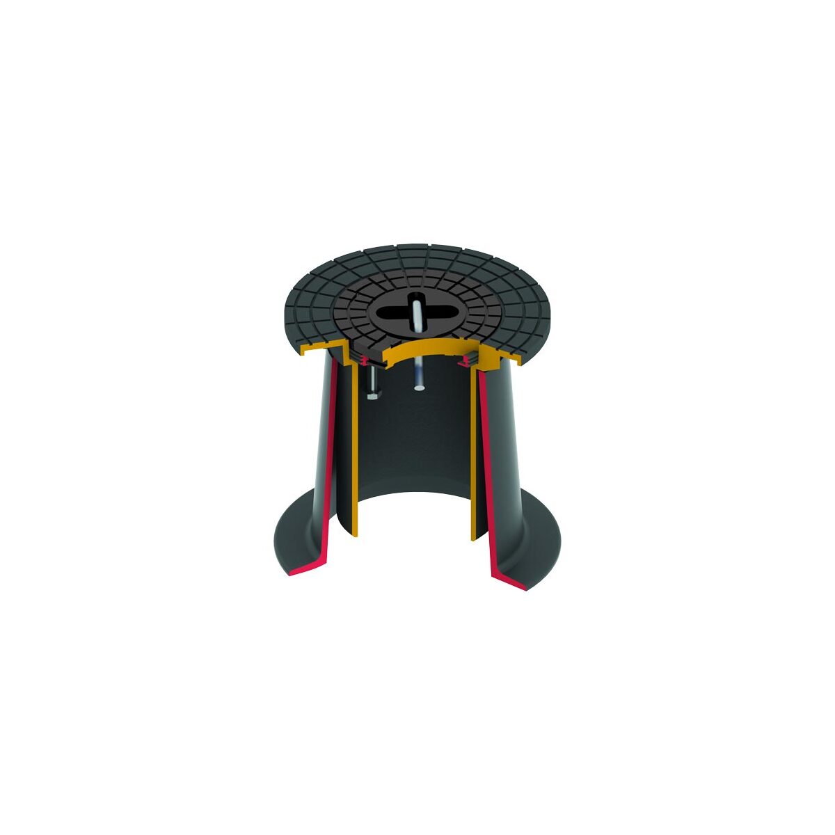 Vodárenský šoupátkový poklop KOMPAKTUS je vhodný k ochranně armatur před mechanickým poškozením, znečištěním či zasypáním. Umožňuje bezpečný přístup k ovládacím částem armatur a usnadňuje jejich údržbu a servis. Poklop je robustní a odolný proti vnějším vlivům, a to jak mechanickému poškození, tak pronikání nečistot. Vrchní díl a víko jsou zhotoveny z tvárné litiny GGG, spodní díl z plastu PA6 GF30. Litinové díly jsou opatřeny práškovou černou nebo modrou barvou, ta zajišťuje ochranu před korozí.
