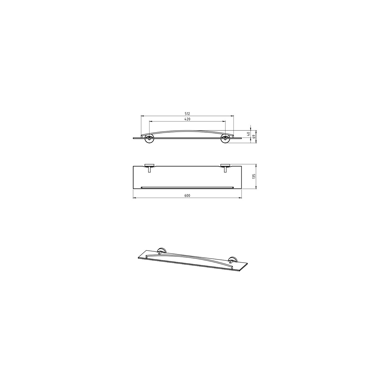 Polička Metalia 11 se zábradlím, sklo/chrom, Novaservis, 0153,0