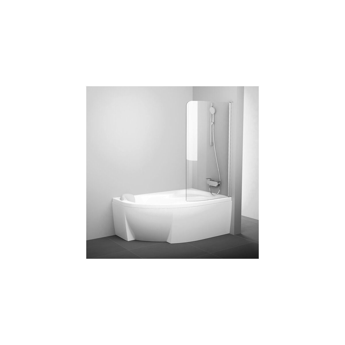 Luxusní skleněná zástěna určená pro vany Rosa. Její otočný sloupek umožňuje sklopení v úhlu 180° do vnitřního prostoru nad vanu nebo vyklopení ven ke stěně. Čištění skla zástěny je tak jednoduché a vstup do vany příjemně široký.