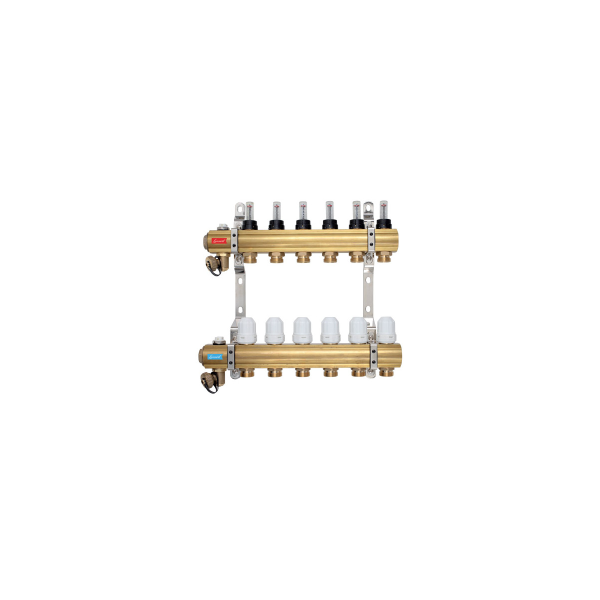 Lansanit mosazný rozdělovač s regulačním šroubením, s průtokoměry a uzavíracími ventily je klíčovým prvkem pro efektivní řízení a distribuci teplé vody do podlahového vytápění. Tento kvalitní a spolehlivý rozdělovač je navržen tak, aby vám poskytl optimální kontrolu nad teplotou a komfortem vašeho domova, kanceláře nebo jiných obytnýcýh prostor. Při montáži do větších objektů se doporučuje montáž s čerpadlovou sestavou Lansanit kvůli lepšímu hydraulickému vyvážení topných okruhů.