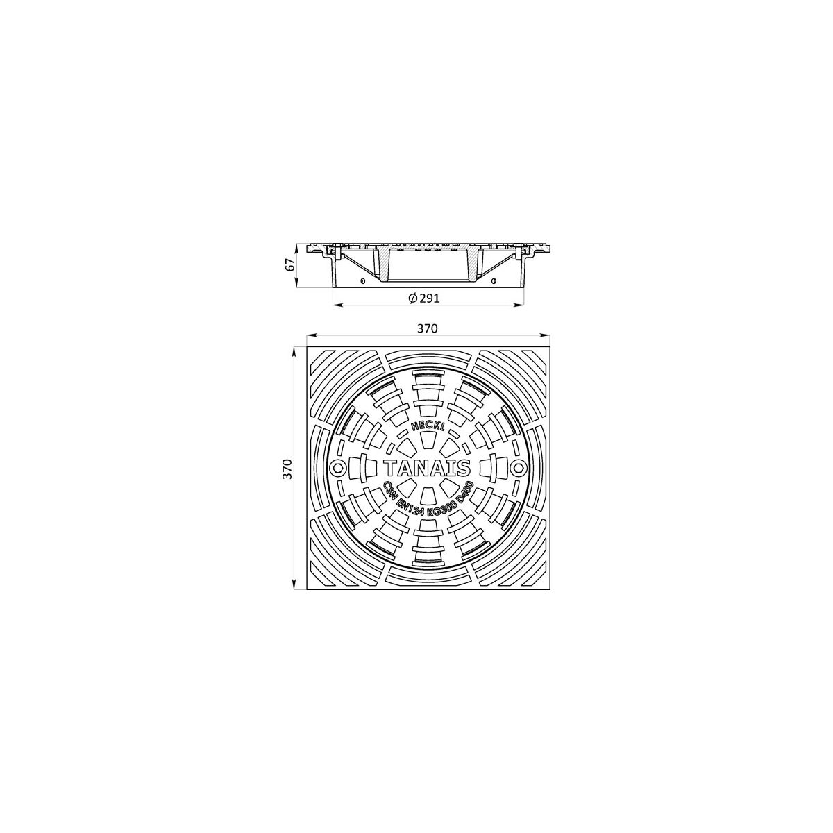 Vtoková šachtová mříž Tanais s čtvercovým rámem je určena k odvodu povrchových vod z venkovních ploch do prostoru kanalizačních revizních šachet o průměru 315 mm. Mříž se snadno nasazuje na hladký konec šachtové roury. Mříž je určená k obetonování, což zajišťuje její stabilitu a odolnost. Vyrobena z tvárné litiny GGG (EN - GJS), splňuje přísné požadavky normy EN 124 pro zátěžovou třídu D400. Povrchová úprava biumenem zajišťuje dlouhou živostno a odolnost vůči vnějším vlivům. Mříž je bezpečně upevněná v rámu pomocí dvou nerezových šroubů.