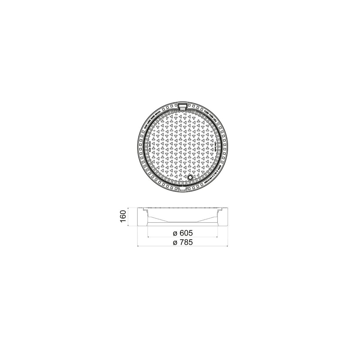 Šachtový poklop KASI Europa 8 D400 bez odvětrání, litino-betonový rám, DN 600, KDB81B
