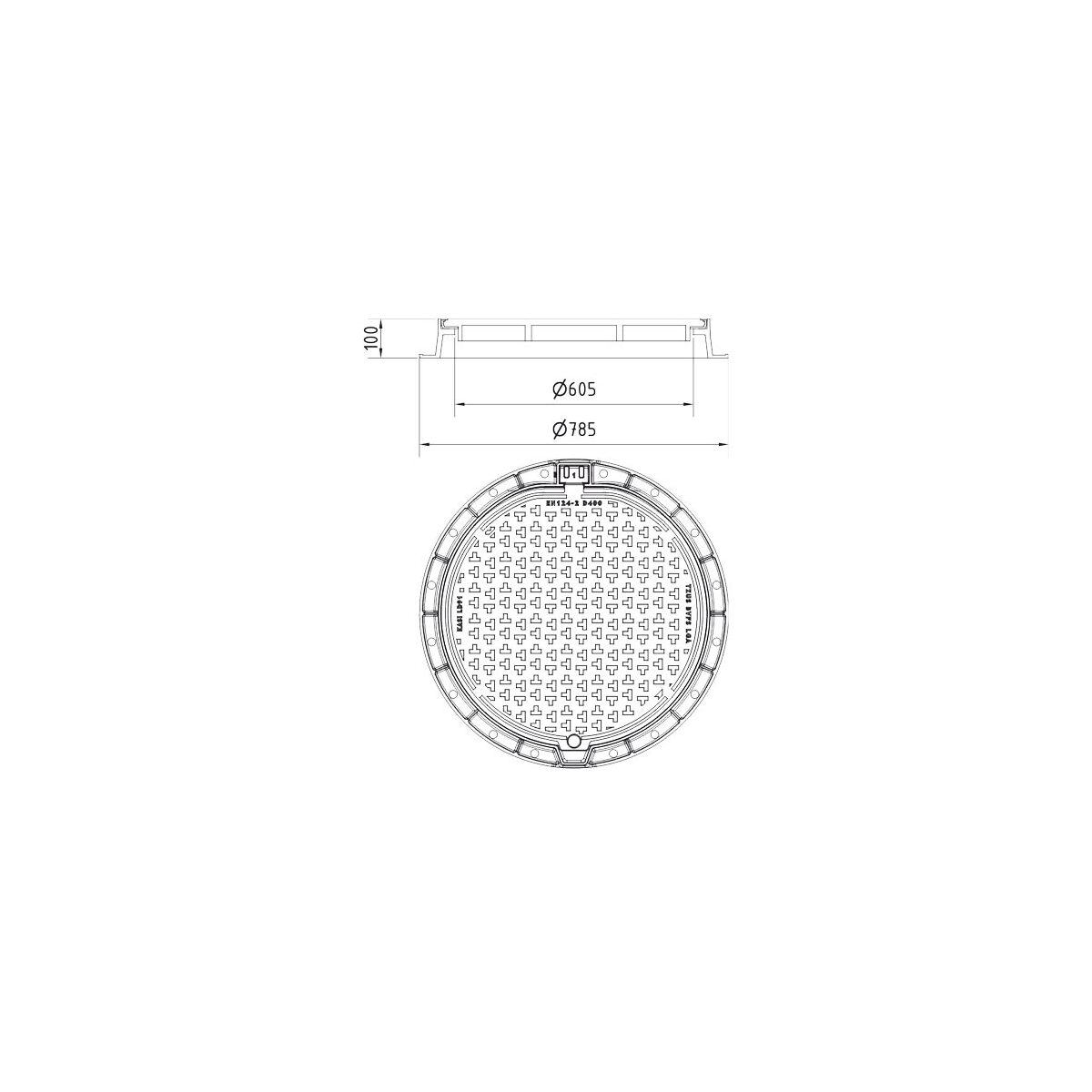 Šachtový poklop KASI Europa 9 D400 bez odvětrání, litinový rám, DN 600, KDL91