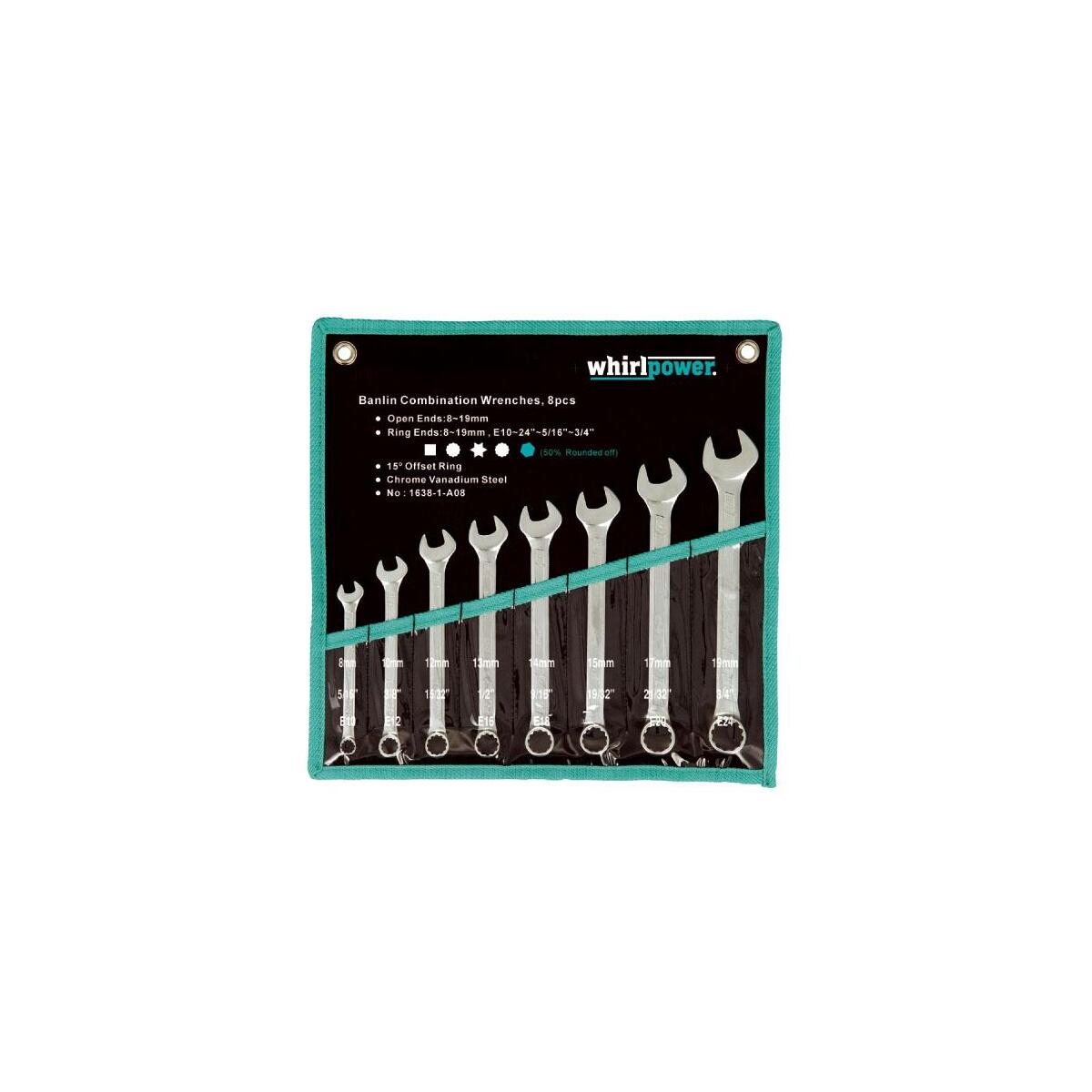 Sada kombinovaných klíčů, 8 ks, 8 - 19 mm, Whirlpower