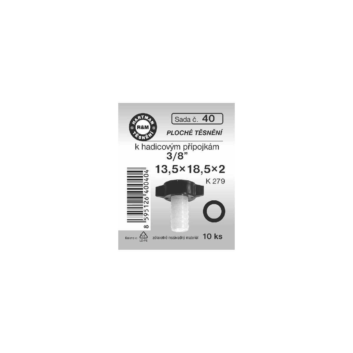 Sada těsnění k hadicovým přípojkám, 13,5 x 18,5 x 2, pryžové, 10 ks, č. 40, HARTMAN