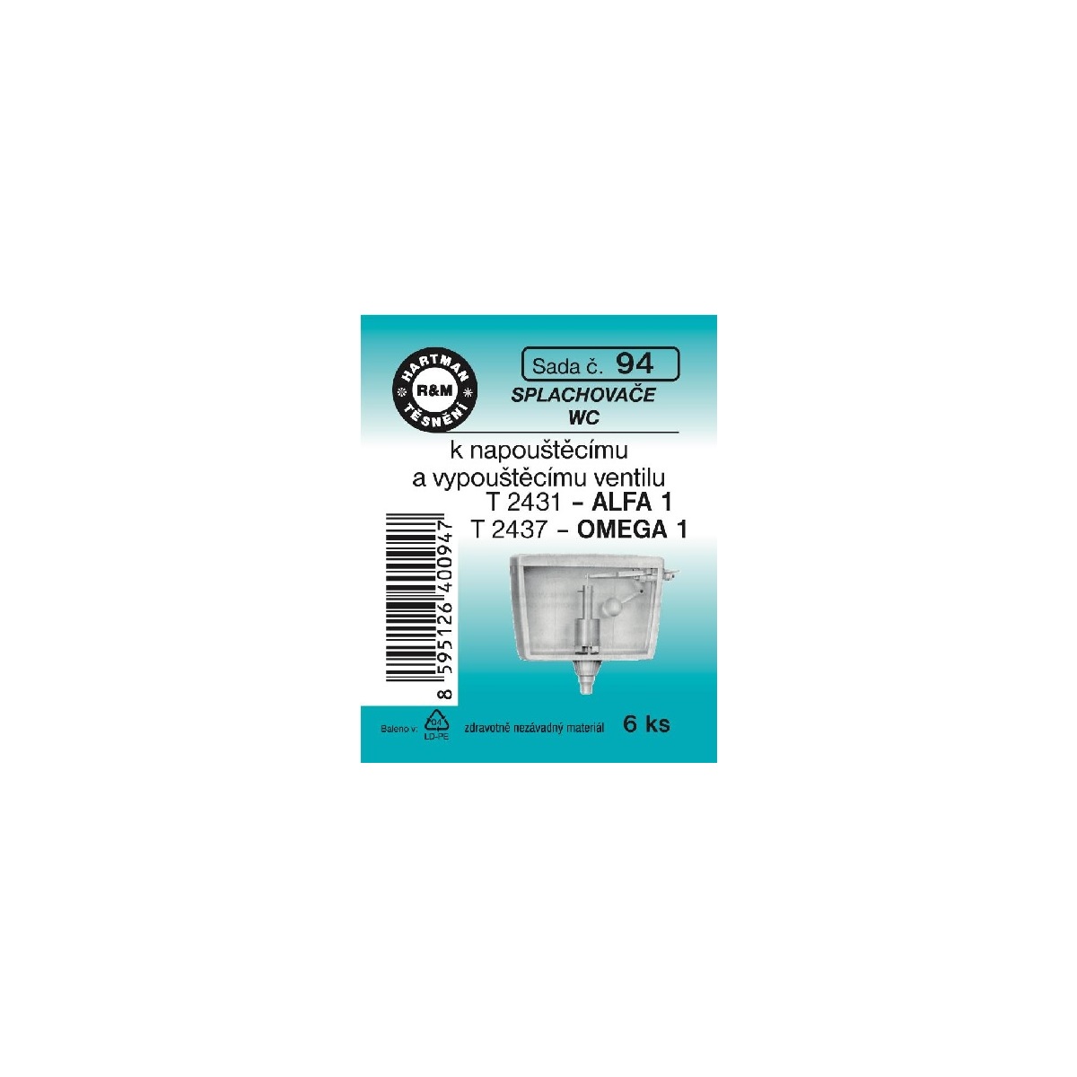 Sada těsnění k napouštěcímu a vypouštěcímu ventilu, T 2431, T 2437, 6 ks, č. 94, HARTMAN
