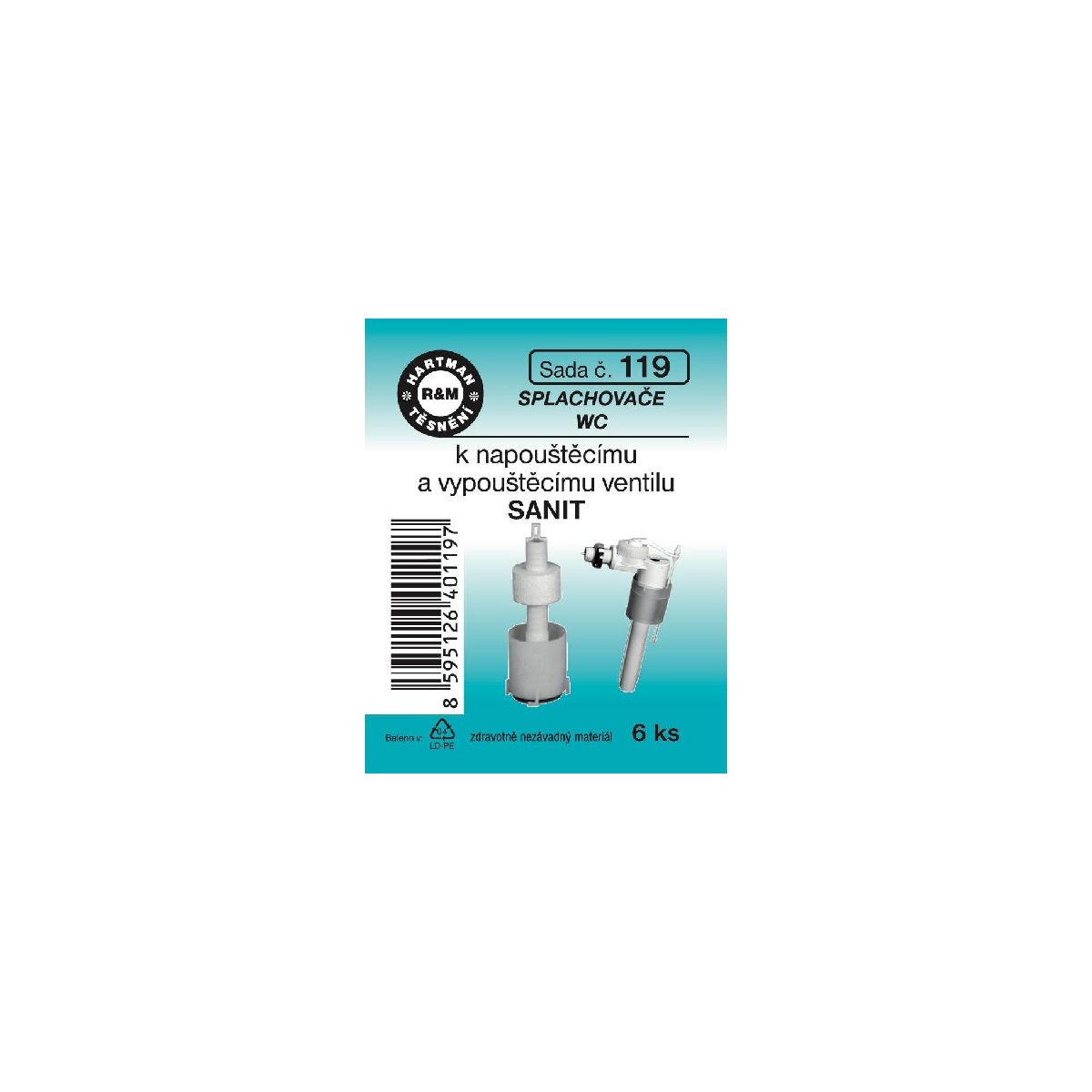 Sada těsnění k napouštěcímu a vypouštěcímu ventilům WC, 6 ks, č. 119, HARTMAN