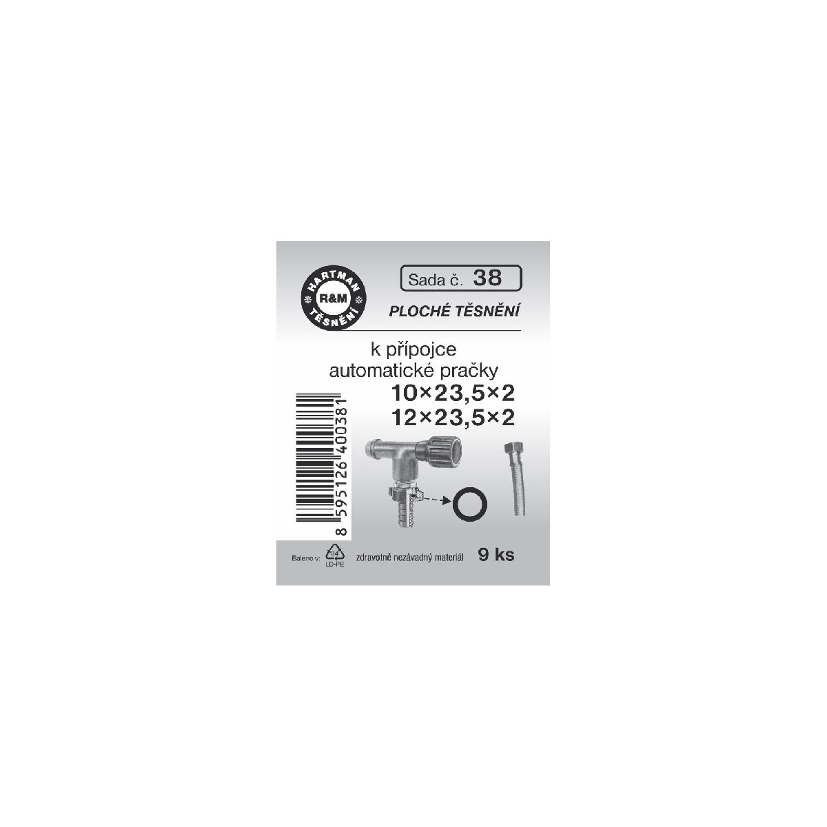 Sada těsnění k přípojce, 10 x 23,5 x 2, 12 x 23,5 x 2, pryžové, 9 ks, č. 38, HARTMAN