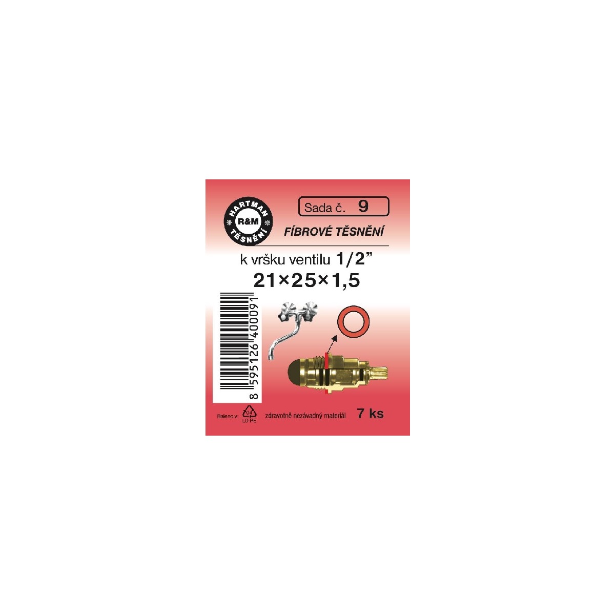 Sada těsnění k vršku ventilu, 1/2", 21 x 25 x 1,5, fíbrové, 7 ks, č. 9, HARTMAN