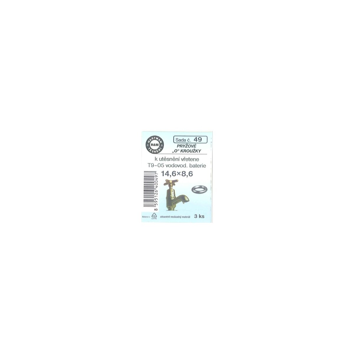 Sada těsnění "O" kroužků, 14,6 x 8,6, pryžové, 3 ks, č. 49, HARTMAN