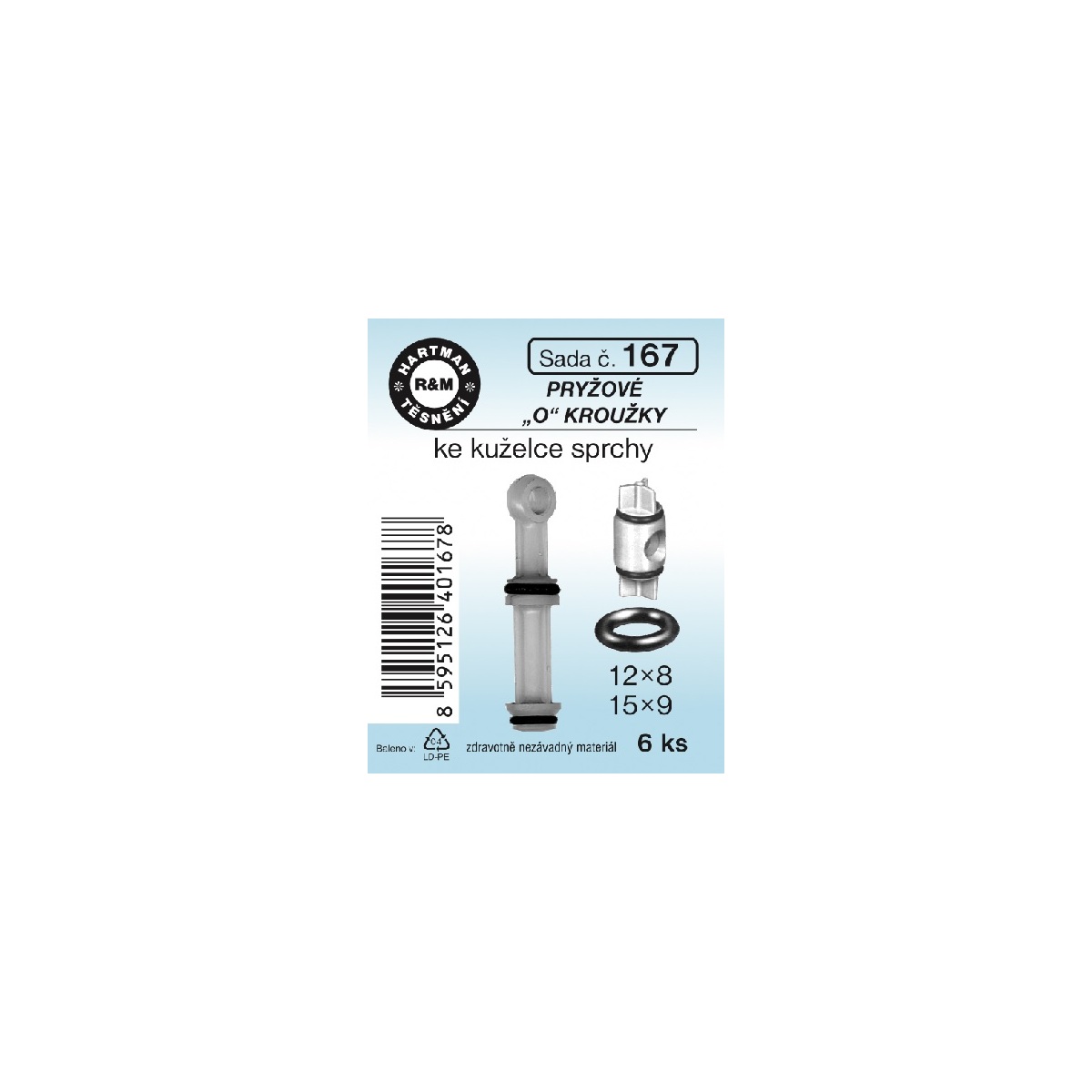 Sada těsnění "O" kroužky, 12 x 8, 15 x 9, pryž, 6 ks, č. 167, HARTMAN