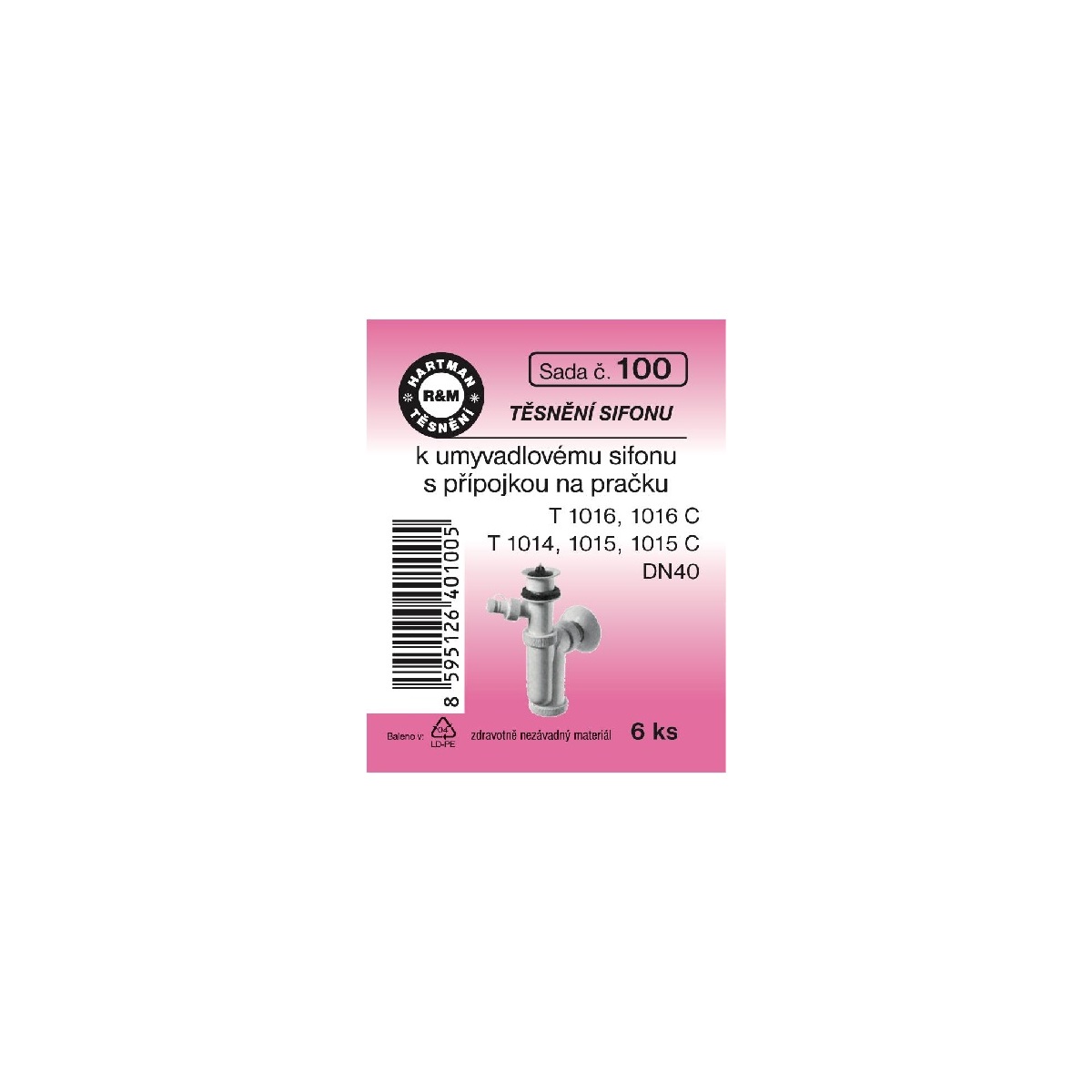Sada těsnění pro sifony, T1016, 1016C – DN – 40, T1014, 1015, T1015C, 6 ks, č. 100, HARTMAN