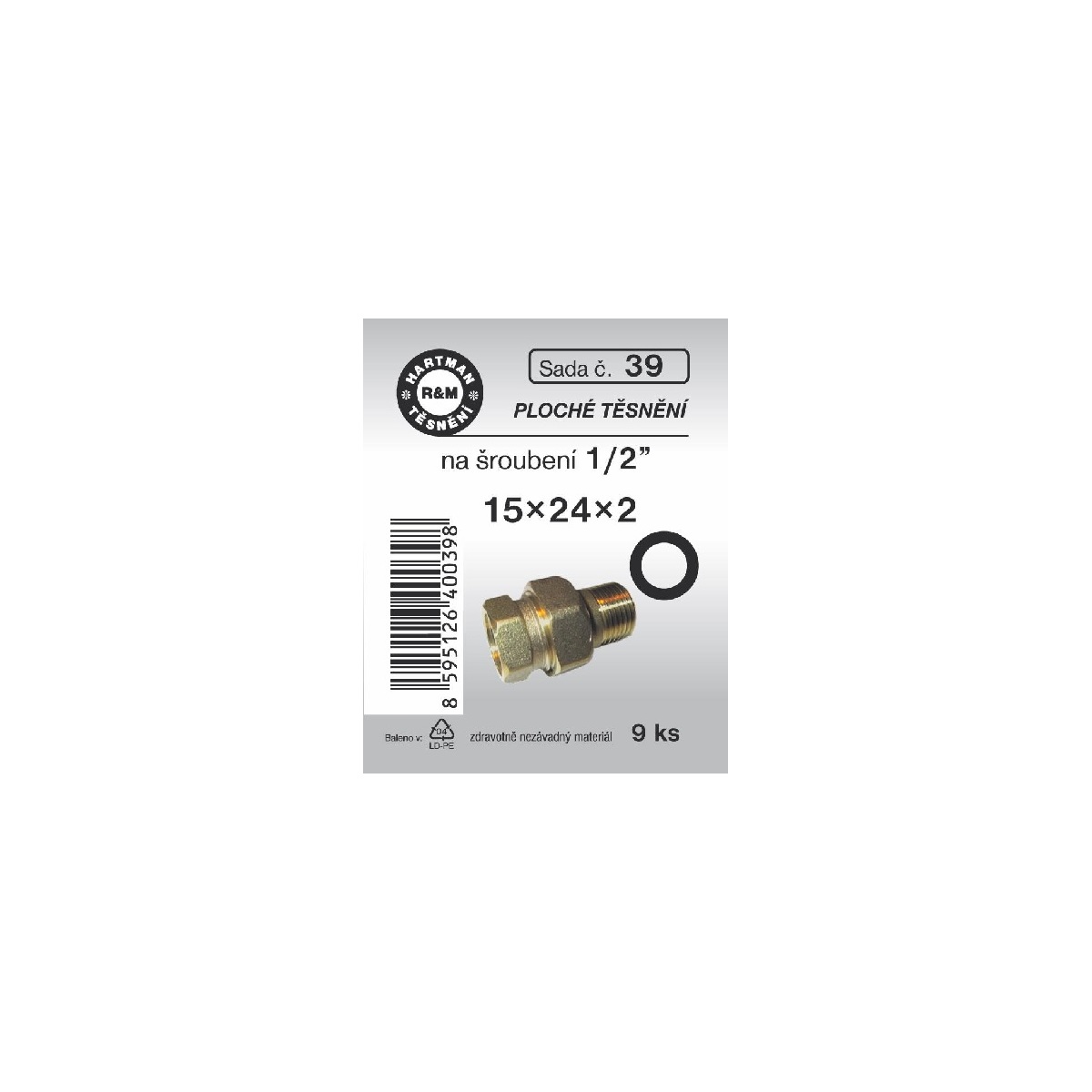 Sada těsnění pro šroubení, 1/2", pryžové, 9 ks, č. 39, HARTMAN