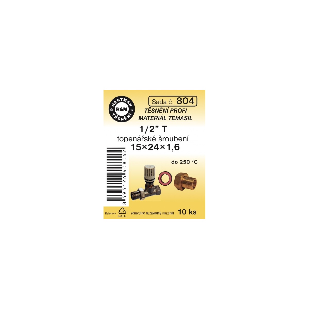 Sada těsnění pro šroubení, 1/2" T, 15 x 24 x 1,6, topenářské, 10 ks č. 804, HARTMAN