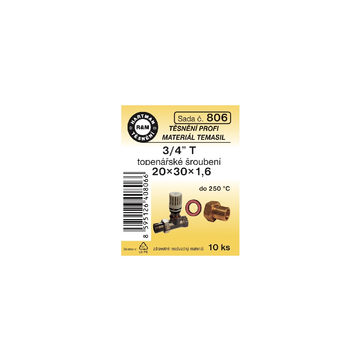 Sada těsnění pro šroubení, 3/4" T, 20 x 30 x 1,6, topenářské, 10 ks č. 806, HARTMAN