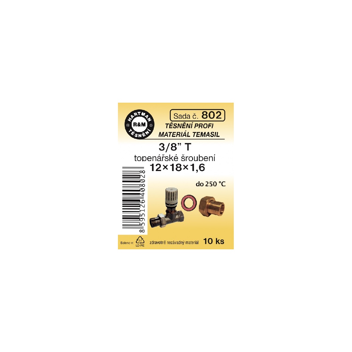 Sada těsnění pro šroubení, 3/8" T, 12 x 18 x 1,6, topenářské, 10 ks č. 802, HARTMAN