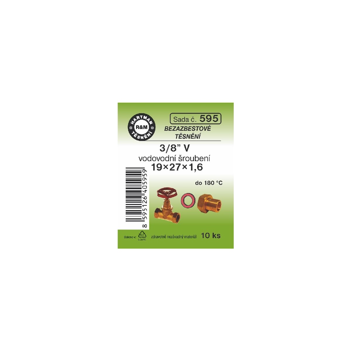 Sada těsnění pro šroubení, 3/8" V, 19 x 27 x 1,6, bezazbestové, 10 ks č. 595, HARTMAN