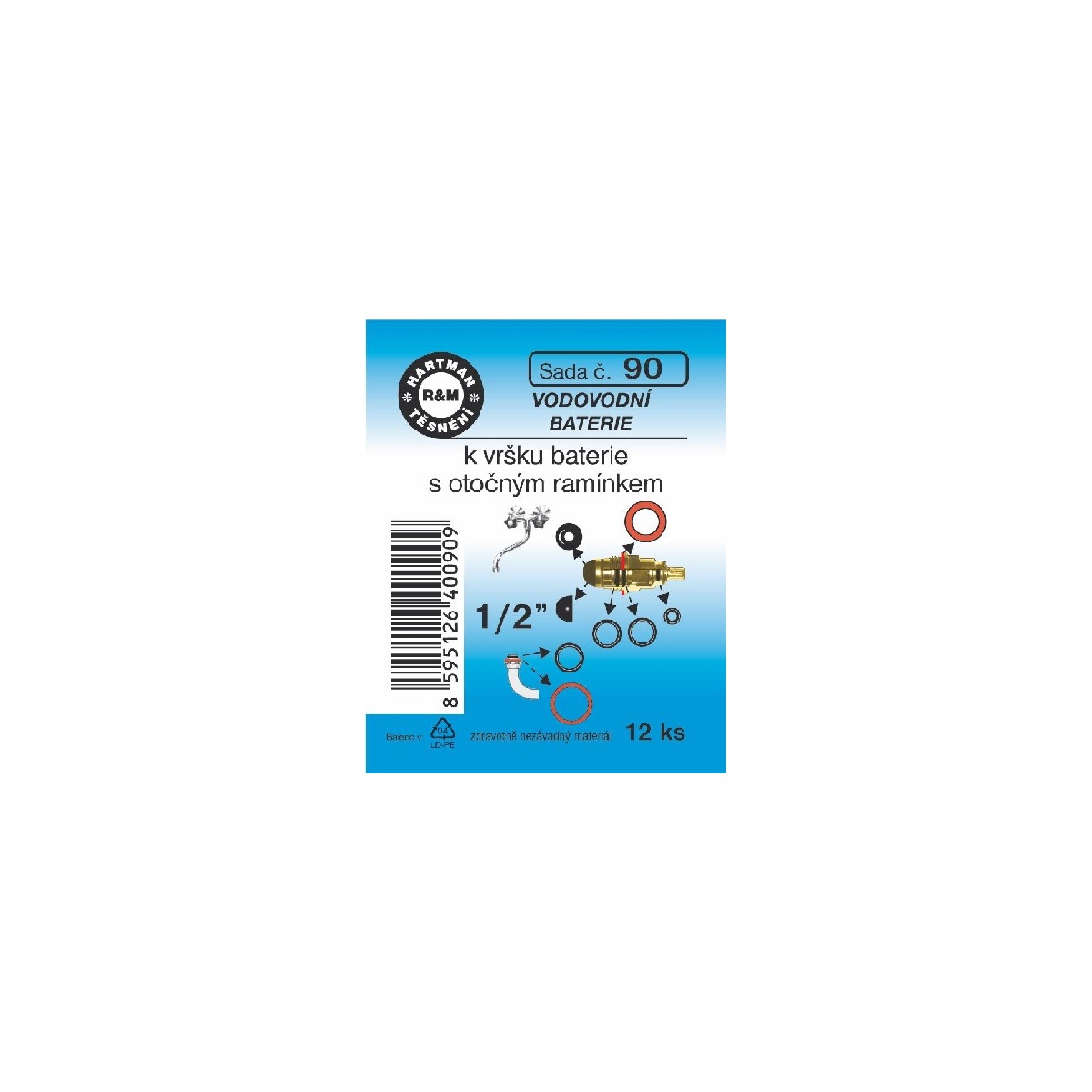 Sada těsnění pro vodovodní baterie, k vršku baterie, 1/2", 12 ks, č. 90, HARTMAN