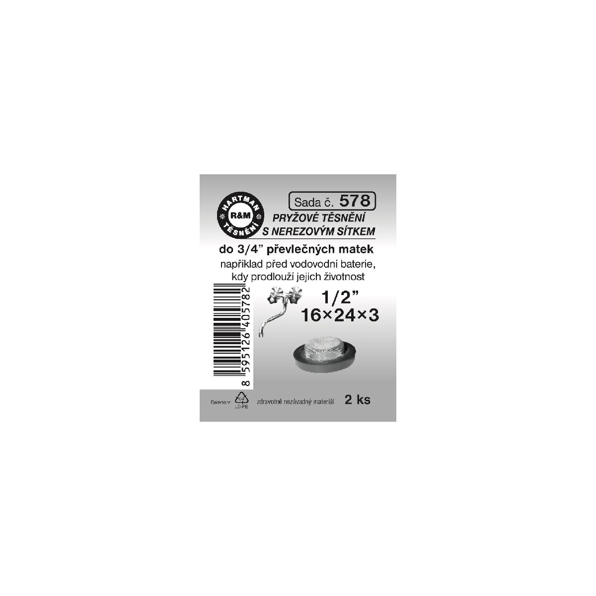 Sada těsnění s nerezovým sítkem, 1/2“, 16 x 24 x 3, 2 ks, č. 578, HARTMAN