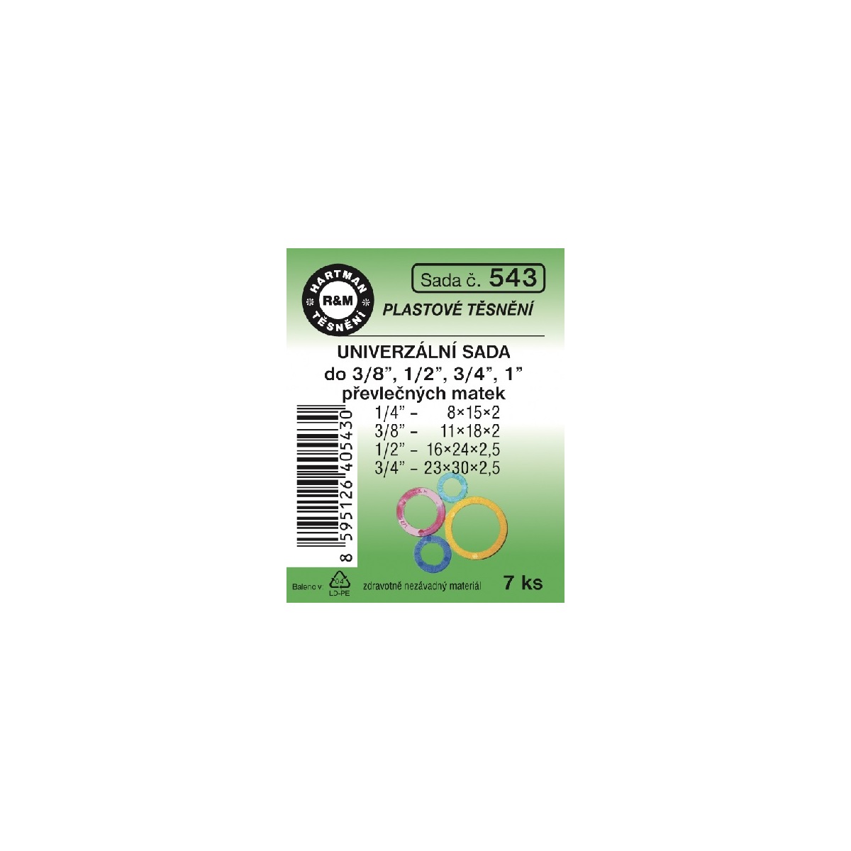 Sada těsnění univerzální, 3/8“, 1“, 1/2", 3/4“, 7 ks, č. 543, HARTMAN