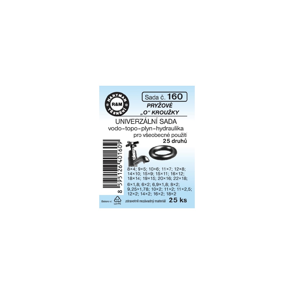 Sada těsnění univerzální, vodo-topo-plyn-hydraulika, 25 ks, č. 160, HARTMAN