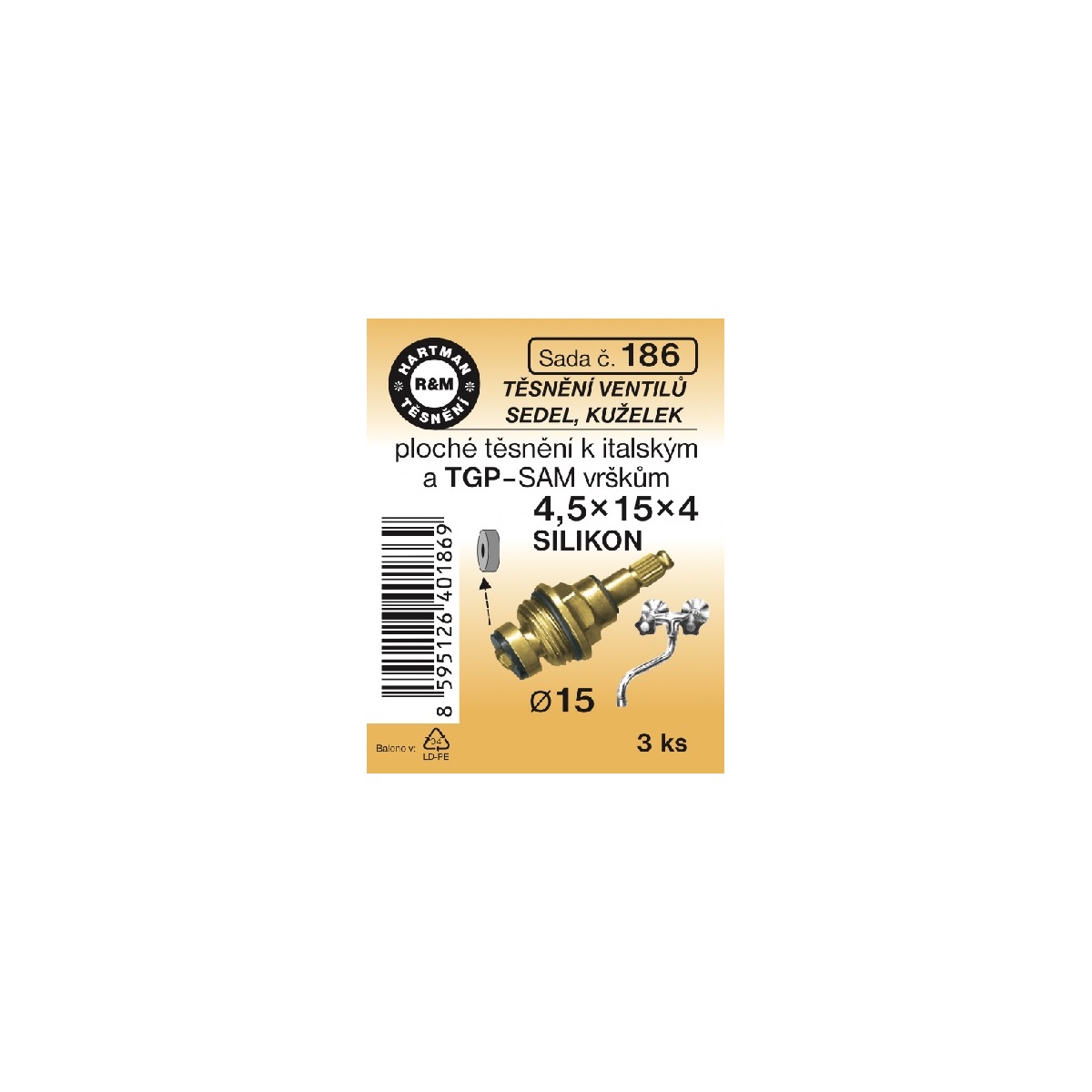 Sada těsnění ventilů sedel, kuželek,4,5 x 15 x 4, průměr 15, silikon, 6 ks, č. 186, HARTMAN
