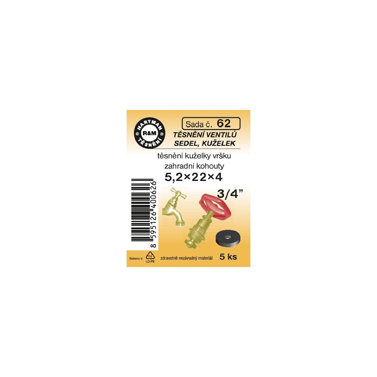 Sada těsnění ventilů sedel, kuželek, k vršku kuželky, 5,2 x 22 x 4, 3/4“, 5 ks, č. 62, HARTMAN