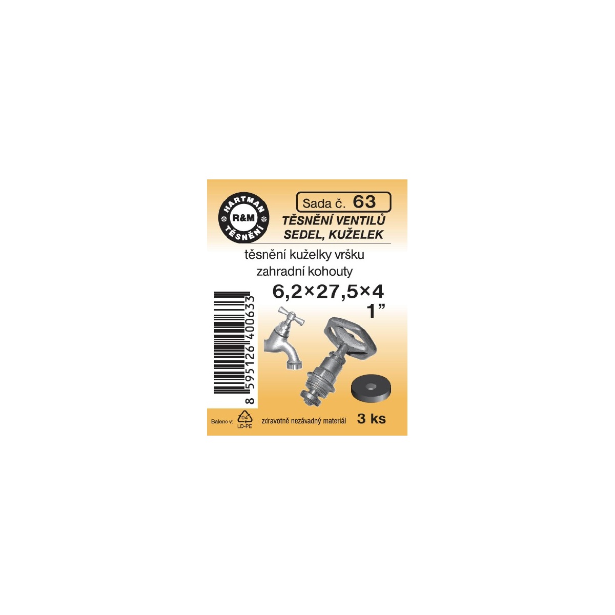 Sada těsnění ventilů sedel, kuželek, k vršku kuželky, 6,2 x 27,5 x 4, 1", 3 ks, č. 63, HARTMAN