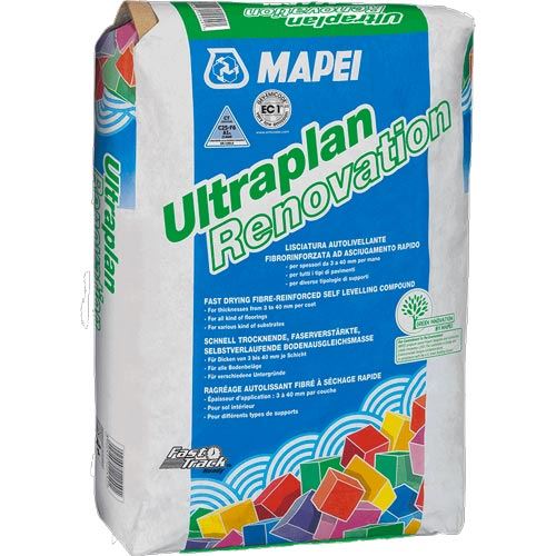 Samonivelační vlákny vyztužená rychletvrdnoucí vyrovnávací hmota pro tloušťky vrstvy od 3 do 40 mm. Ultraplan Renovation se používá v interiérech na vyrovnání a vyhlazení rozdílných tlouštěk vrstvy od 3 do 40 mm na nových nebo stávajících podkladech. Doporučuje se zejména pro vyrovnání problematických podkladů. jako jsou například dřevené podlahy různých typů, a pro podklady, které nejsou z hlediska fyzikálních a chemických parametrů stejné, zejména v případě rekonstrukčních prací v budovách. kde se provádějí demolice a dispoziční změny.