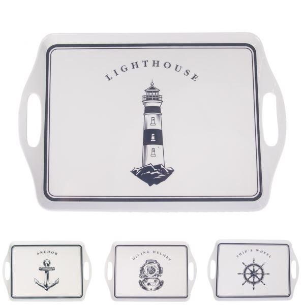 Servírovací tác s uchy. Díky atraktivnímu dekoru může být pěknou dekorací v kuchyni. Materiál: melamin. Assort dekorů. Rozměry: 38x23x2,5 cm.