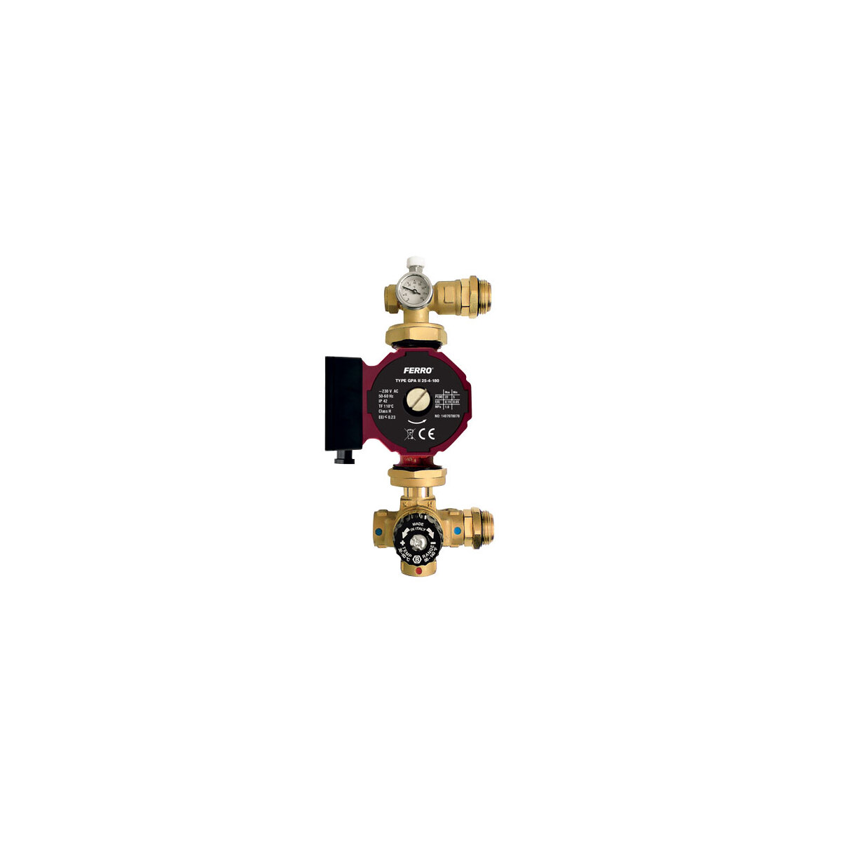 Vhodná sestava pro montáž na rozdělovače Lansanit N v případě vytápění rozsáhlejších prostor. Sestava obsahuje 4-cestný termostatický ventil s připojením 3/4", oběhové čerpadlo FERRO 25-40 130 mm, teploměr 0 - 80 °C, ruční odvzdušňovací ventil. Termostatickým ventilem lze regulovat teplotu otopné vody 25 - 50 °C.