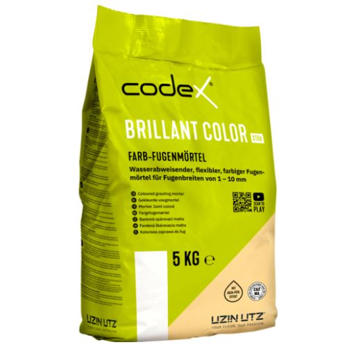 Flexibilní barevná spárovací malta pro spárování spíše savých keramických dlaždic a desek, obklady z umělého a přírodního kamene necitlivé na zabarvení a rovněž keramické obklady s citlivými glazurami. Také je vhodná na podlahová vytápění. Na stěnu a podlahu ve vnitřním a venkovním prostoru. codex Brillant Color Xtra splňuje požadavky CG2 WA podle DIN EN 13 888. DGNB: Nejvyšší stupeň kvality podle kritéria DGNB ENV 1.2 rizika pro lokální životní prostředí.