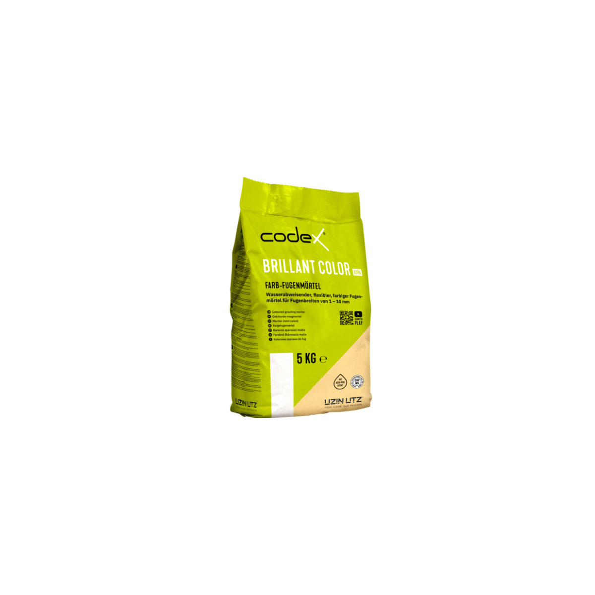 Flexibilní barevná spárovací malta pro spárování spíše savých keramických dlaždic a desek, obklady z umělého a přírodního kamene necitlivé na zabarvení a rovněž keramické obklady s citlivými glazurami. Také je vhodná na podlahová vytápění. Na stěnu a podlahu ve vnitřním a venkovním prostoru. codex Brillant Color Xtra splňuje požadavky CG2 WA podle DIN EN 13 888. DGNB: Nejvyšší stupeň kvality podle kritéria DGNB ENV 1.2 rizika pro lokální životní prostředí.