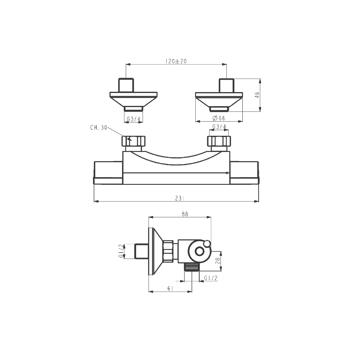 Sprchová baterie Aqualight 120 mm, chrom, nástěnná, termostatická, bez příslušenství, Novaservis 2564/1,0