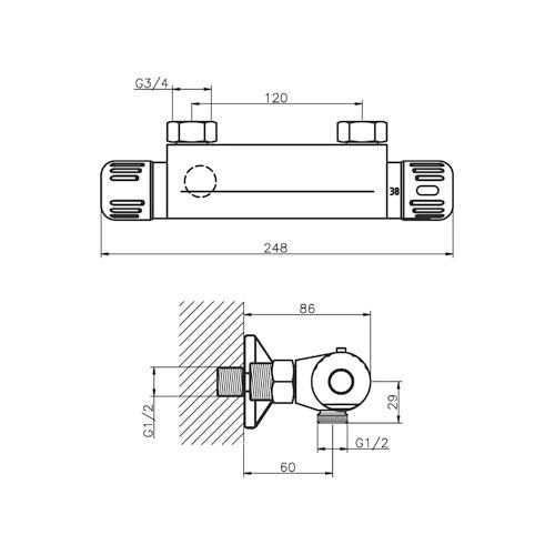 Sprchová baterie Aqualight 120 mm, chrom, nástěnná, termostatická, bez příslušenství, Novaservis 2664/1,0