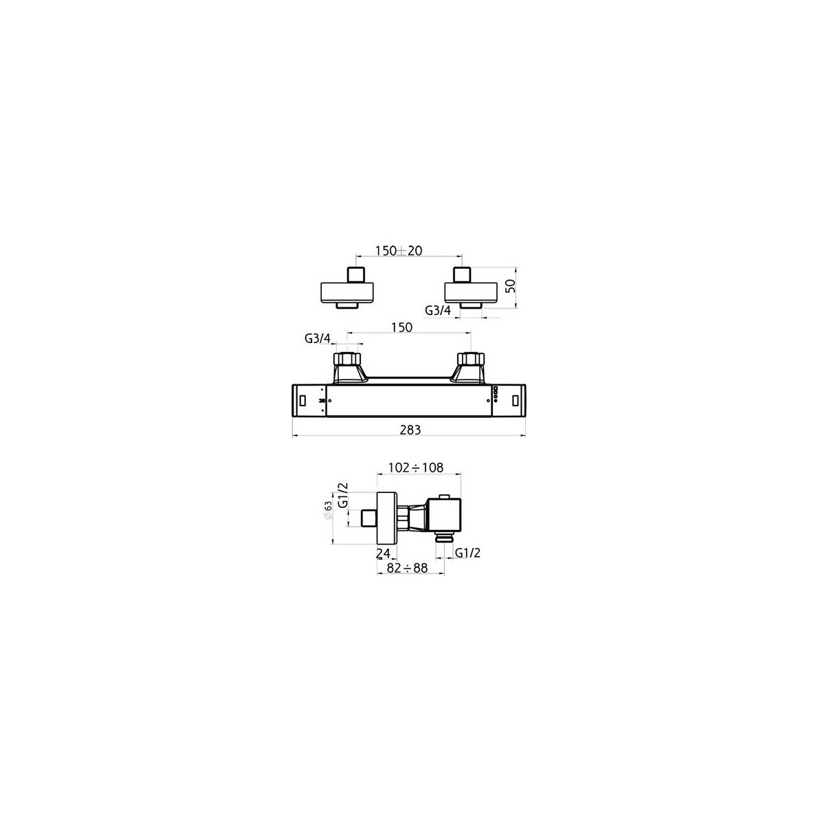Sprchová baterie Aqualight 150 mm, chrom, nástěnná, termostatická, bez příslušenství, Novaservis 2860/1,0