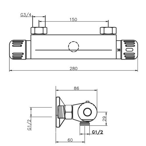 Sprchová baterie Aqualight 150 mm, chrom, nástěnná, termostatická, bez příslušenství, Novaservis 2660/1,0