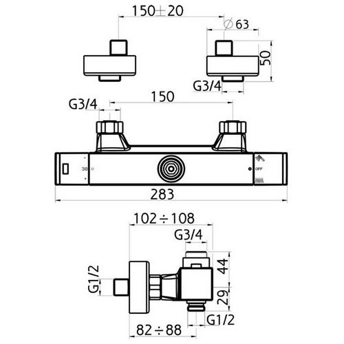 Sprchová baterie Aqualight 150 mm, chrom, nástěnná, termostatická, bez příslušenství, Novaservis 2862/1,0Sprchová baterie Aqualight 150 mm, chrom, nástěnná, termostatická, bez příslušenství, Novaservis 2862/1,0