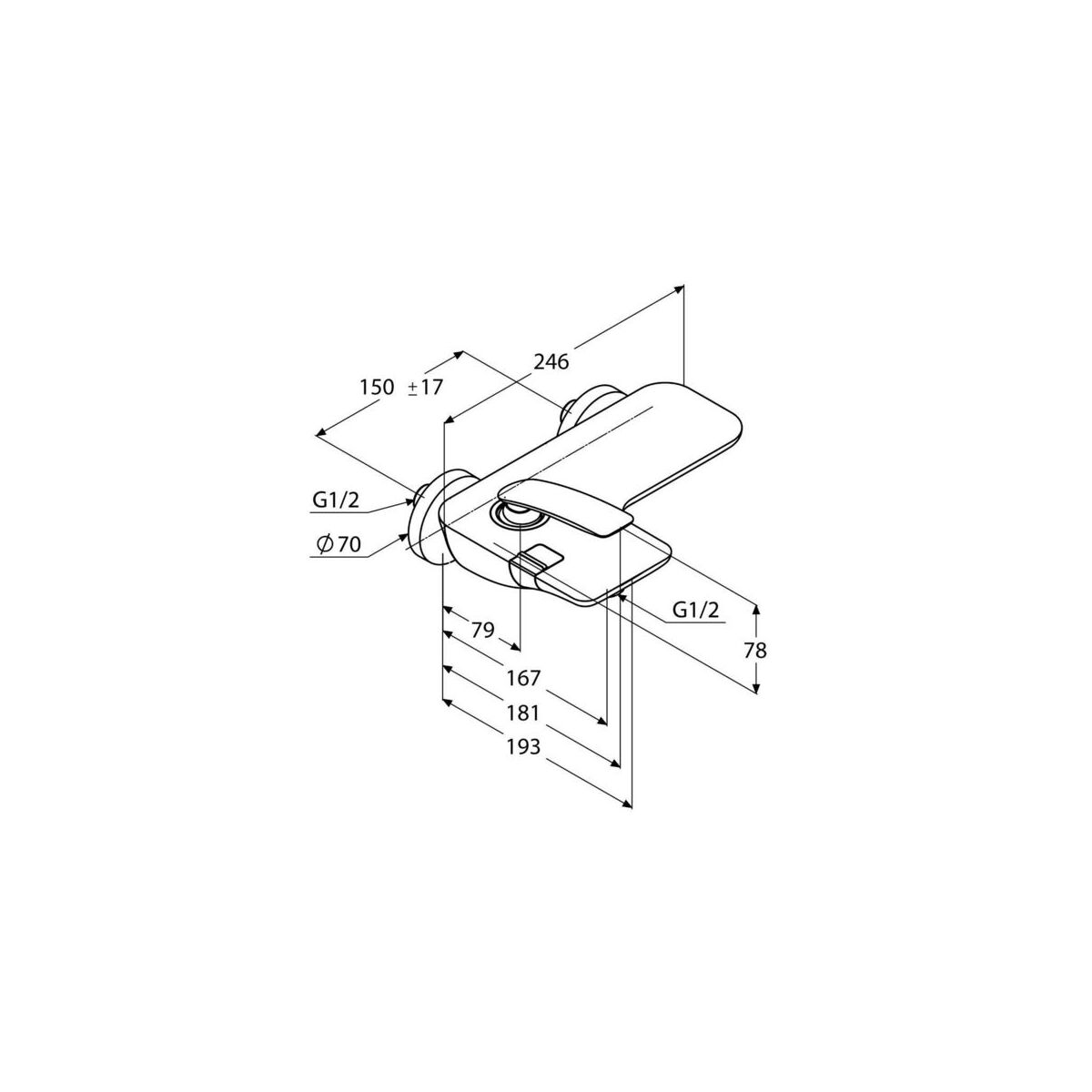 Sprchová baterie Balance 150 mm, chrom, nástěnná, bez příslušenství, Kludi 524450575