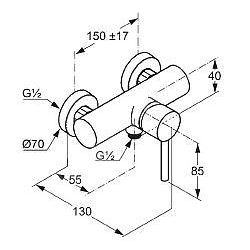 Sprchová baterie Bozz 150 mm, chrom, nástěnná, bez příslušenství, Kludi 388310576