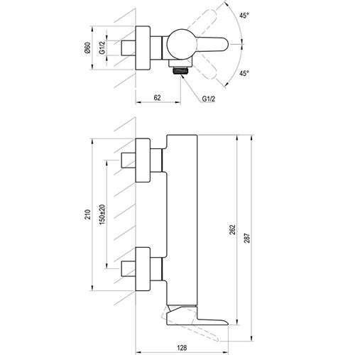 Sprchová baterie Puri 150 mm, chrom, nástěnná, bez příslušenství, PU 032.00, Ravak X070145