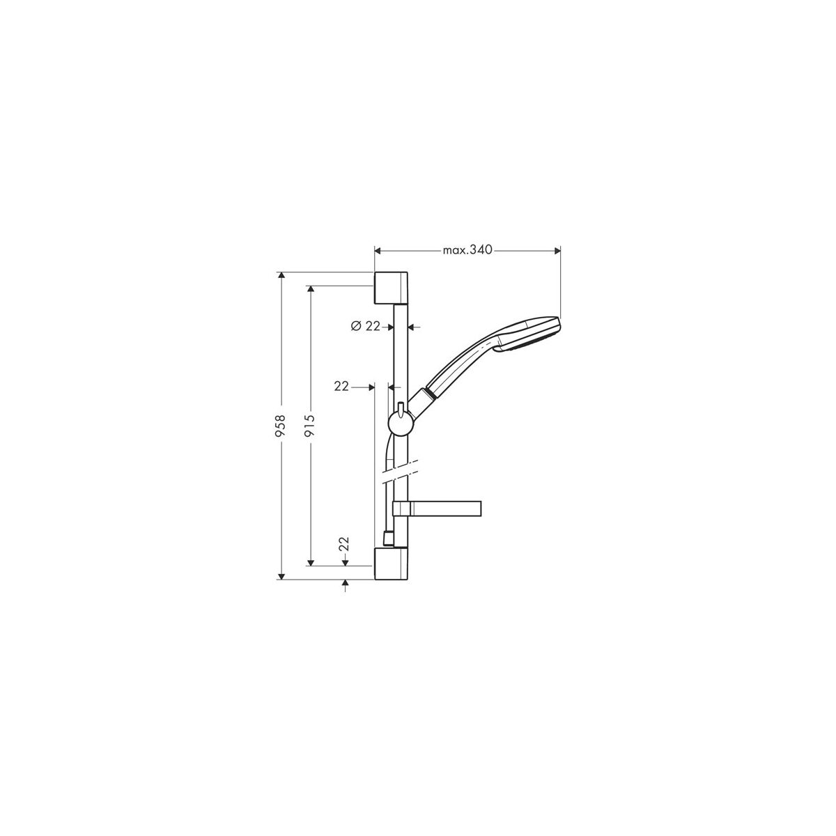 - Sprchová tyč (délka 959 mm, průměr 22 mm)