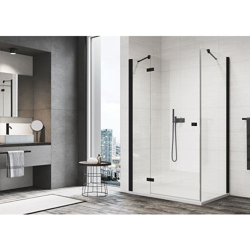 Sprchová stěna ANNEA Black ANT 900 mm, sklo čiré, profil černý, SanSwiss, ANT09000607