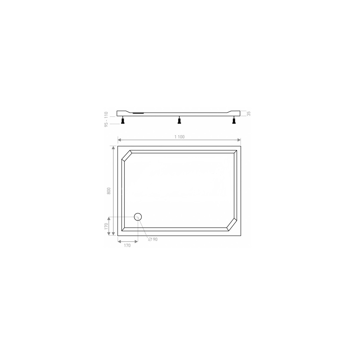 - Rozměr vaničky 800 x 1100 mm 6I4U000101