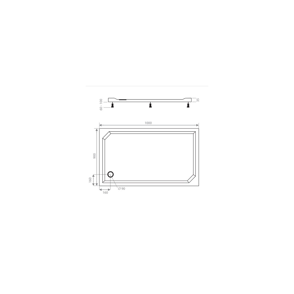 - Rozměr vaničky 900 x 1000 mm 6I4U000101